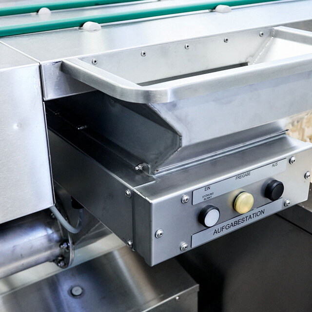 Aufgabestation stirnseitig am Spülmaschineneinlauf